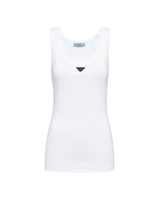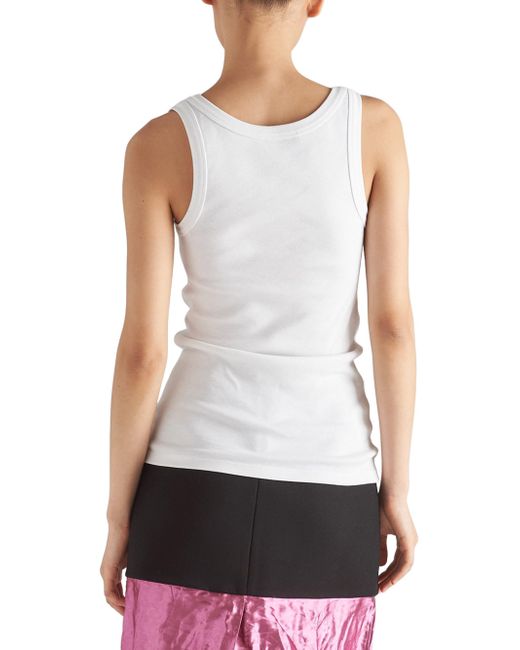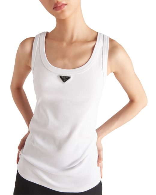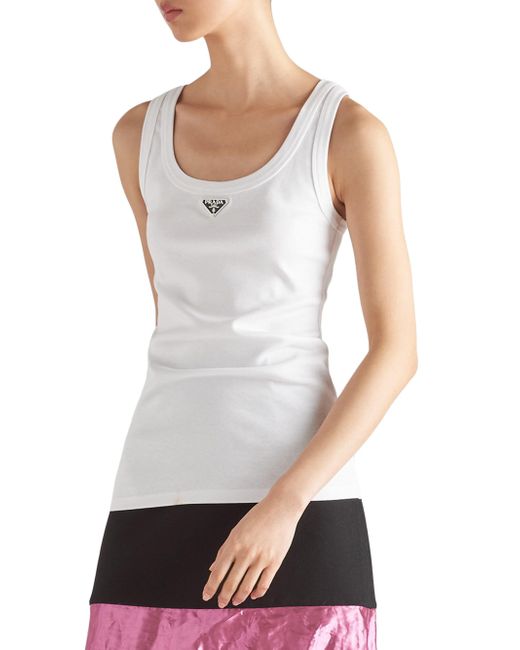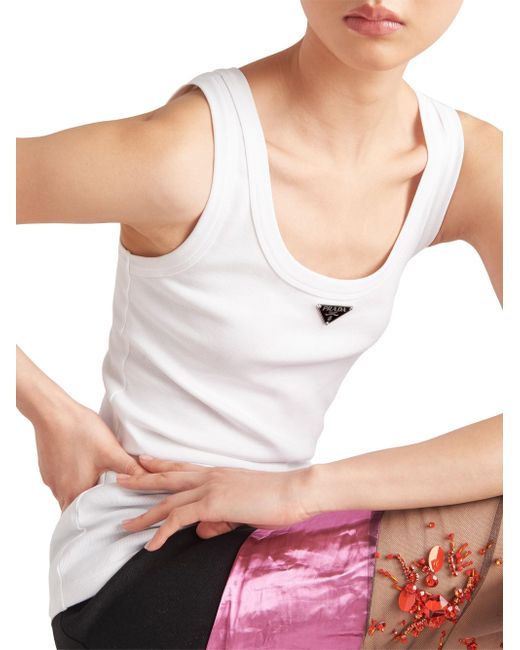 Pragmatic garments acquire new importance and value. This menswear-style tank top presented during the FW22 fashion show is transformed with a feminine touch. The essential Prada garment characterized by a fitted silhouette embodies the luxury of simplicity. The triangle logo stands out on the top. Slim fit Scoop neck Enameled metal triangle logo Imported. Lsd Rtw - Prada Rtw > Prada > Saks Fifth Avenue > Barneys. Prada. Color: White. Size: 0.