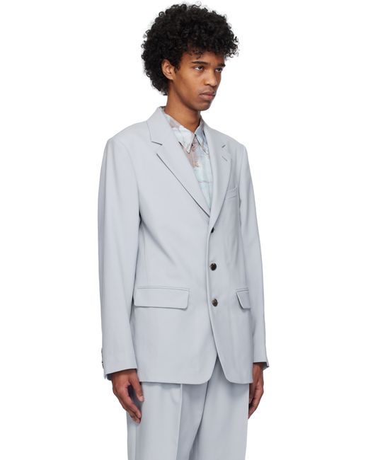 Wool- and mohair-blend twill blazer. · Notched lapel · Button closure · Welt pocket and flap pockets · Padded shoulders · Four-button surgeon's cuffs · Central vent at back hem · Welt pocket at interior · Full cupro satin lining Supplier color: Light blue