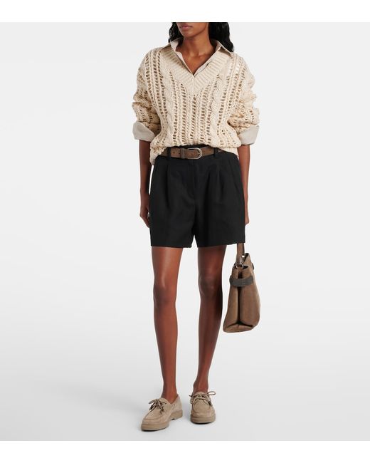 Materiale: 59% cotone, 41% lino. Trattamento: lavaggio a secco. Made in Italy. Colore del designer: Ivory Glow. Fodera: 36% poliestere, 32% acetato, 32% cupro. Tasche: tasche a fessura laterali. Chiusura: cerniera, bottone e barretta. Cotone.