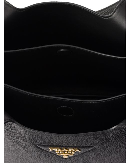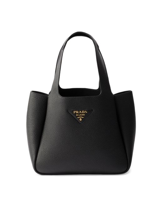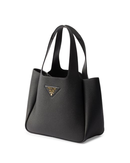The unstructured silhouette of this leather mini bag is accentuated by the reverse stitching that gives the design a soft, rounded shape. The metal lettering logo on the front elevates the compact, modern, and sophisticated accessory. Leather handles Metal hardware Metal lettering logo on the front Magnetic flap closure Nappa leather lining with three compartments Imported 100% Calf Leather 9.8'' W x 8.4'' H x 5.5'' L. Lsd Handbags - Prada Handbags Access > Prada > Saks Fifth Avenue > Barneys. Prada. Color: Black.