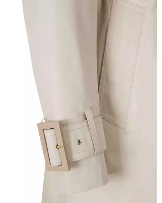 light beige double-breasted button fastening belted waist two side welt pockets classic collar