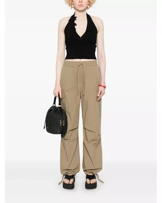 moss green elasticated drawstring waistband two side flap pockets two rear flap pockets drawstring hem