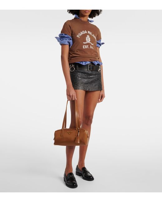 Materiale: poliammide (riciclata). Rivestimento: tessuto. Made in Italy. Colore del designer: Brandy. Colore del metallo: oro. Inserto: pelle. Manici. Chiusura: cerniera superiore. Include: sacca protettiva.