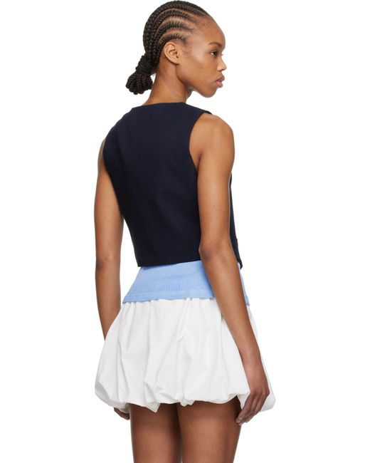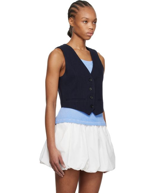Plain-woven stretch viscose-blend vest. · Y-neck · Button closure · Mock welt pockets · Full crêpe lining Supplier color: Navy