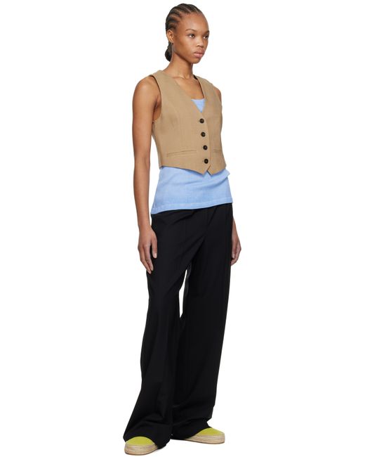 Plain-woven stretch viscose-blend vest. · Y-neck · Button closure · Mock welt pockets · Full crêpe lining Supplier color: Beige