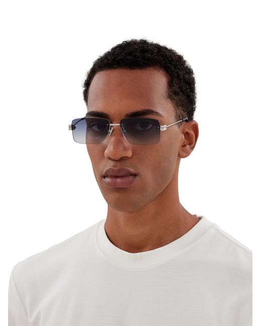From the Lock Collection. These rimless sunglasses from Bottega Veneta are designed with a rectangular silhouette, gradient UV-protective lenses, and logo branding at the temples. 100% UV protection Gradient lenses Adjustable nose pads Includes case and cleaning cloth Metal Made in Italy SIZE 58mm lens width 15mm bridge width 145mm temple length Please note: Lens replacement is non-optional. ABOUT THE BRAND Founded in 1966, the label known for fine Italian craftsmanship with creativity at its core has since catapulted to cult-level status. The house's storied intrecciato pattern in shoes and handbags, alongside its signature minimalist ready-to-wear, have made the label an editor and It-girl favorite. Soft Accessories - Men Sunglasses > Bottega Veneta > Saks Fifth Avenue > Barneys. Bottega Veneta. Color: Silver Blue.