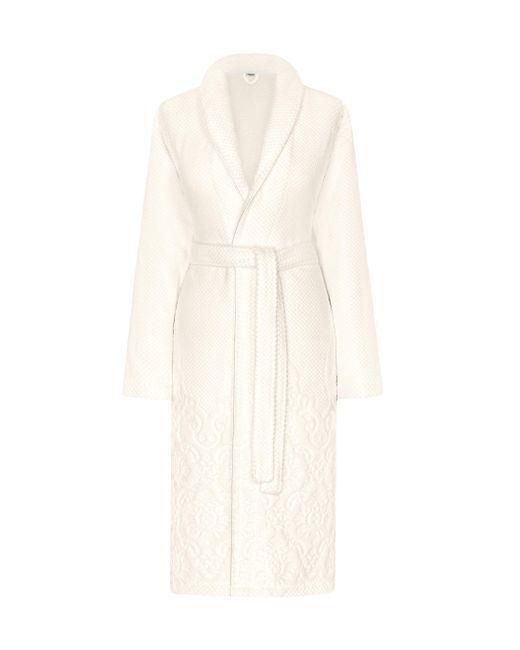 From the Michelle Collection. The Michelle robe from Togas is a classic robe with a shawl collar and a removable belt, made of high-quality combed cotton, known for its softness, durability, and wear resistance. It is adorned with jacquard ornaments in a classic style, creating an exquisite relief through the contrast of terry and smooth fabrics in the pattern. Shawl collar Long sleeves Side seam pockets Removable self-tie belt Open front 100% cotton Machine wash Imported SIZE & FIT Model measurements: 5'10" tall Model is wearing a US size Small. Home - Bed And Bath > Togas > Saks Fifth Avenue > Barneys. Togas. Color: Ecru. Size: XS.