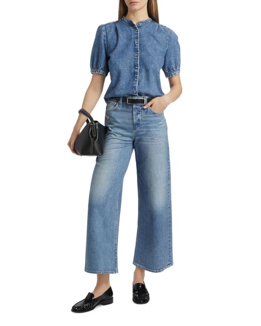 These Miramar Sofie denim-printed pants from rag & bone are crafted of all cotton and feature a classic five-pocket, wide-leg style. Five-pocket style Zip fly, button closure 100% cotton Machine wash Imported SIZE & FIT Rise: about 12" Inseam: about 30" Leg opening: about 25.25" Model measurements: 5'10" tall Model is wearing a US size 4 ABOUT THE BRAND In 2002, rag & bone founder Marcus Wainwright combined his British heritage with a downtown-New York aesthetic to set the tone for the label. At the heart of the edgy-yet-laid-back brand is its focus on quality craftsmanship and attention to detail. The epitome of cool, off-duty style, it's no wonder the signature second-skin denim is favored by many. Contemporary Sportswear - Denim And Bottoms > Rag & Bone > Saks Fifth Avenue > Barneys. rag & bone. Color: Minetta. Size: 24.
