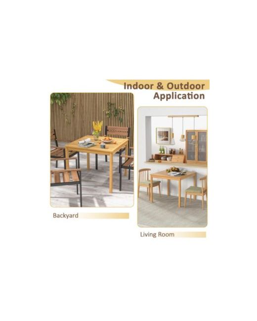 Enhance your outdoor dining experience with this Square Acacia Wood Patio Table, designed for style, durability, and convenience. Featuring premium solid acacia wood, this table is naturally weather-resistant and perfect for patios, gardens, decks, and balconies. The center umbrella hole allows you to add shade for sunny days, making it ideal for outdoor meals and gatherings.