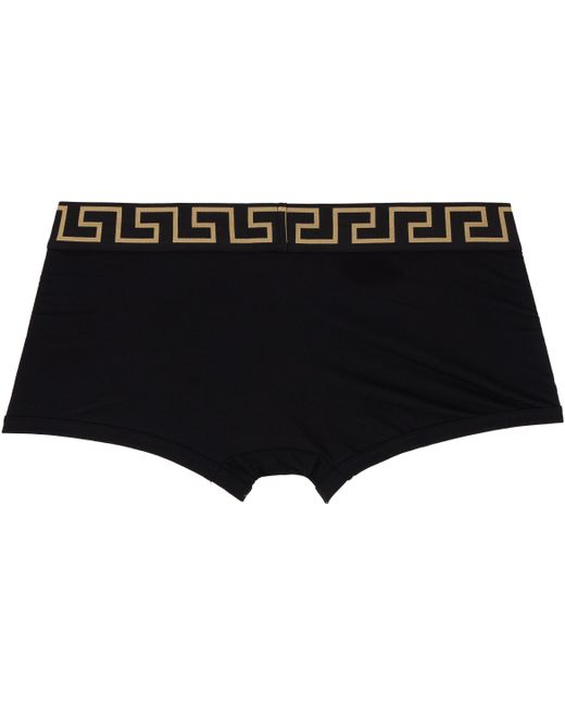 Pack of three stretch organic cotton jersey boxer briefs. · Low-rise · Jacquard Greek key pattern at elasticized waistband · Partially lined Supplier color: Black