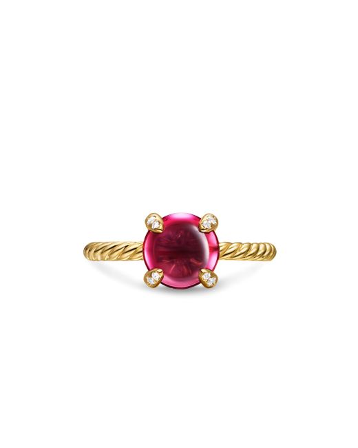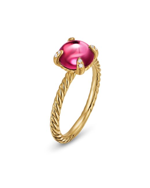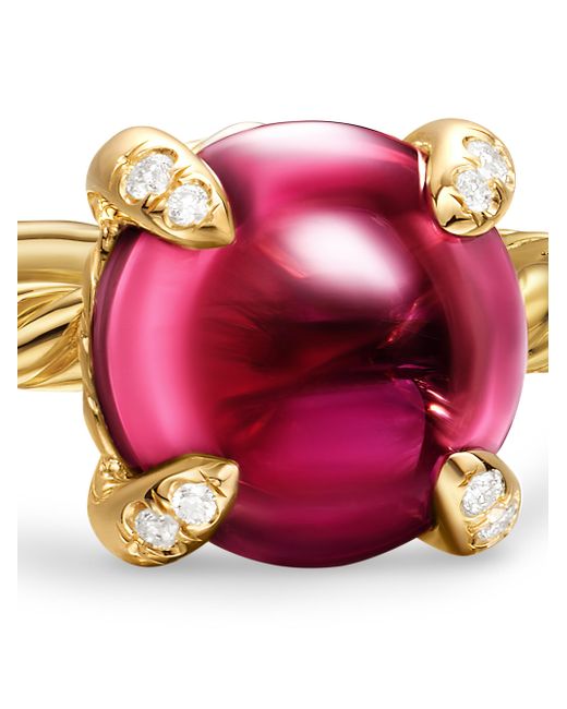 The Châtelaine Collection is a perfect fusion of David and Sybil Yurman's combined art-the marriage of a sculptor and a painter - form and color. 18-karat yellow gold Iolite, 1.96 total carat weight Rhodolite garnet, 3.02 total carat weight Blue moonstone, 2.00 total carat weight Pavé-set diamonds, 0.02 total carat weight Ring, 8mm Imported ABOUT THE BRAND David, a sculptor, and his wife, Sybil, a painter, launched their innovative jewelry brand in 1980 in New York City. Since then, the American design house has pioneered cutting-edge collections-from its iconic combination of sterling silver and diamonds to signature pinky rings. Today, with their son Evan, the Yurmans continue to deliver timeless pieces inspired by nature, art, ancient symbols and Manhattan's stunning architecture. Lsd Jewelry - David Yurman > David Yurman > Saks Fifth Avenue > Barneys. David Yurman. Color: Rhodolite Garnet. Size: 7.