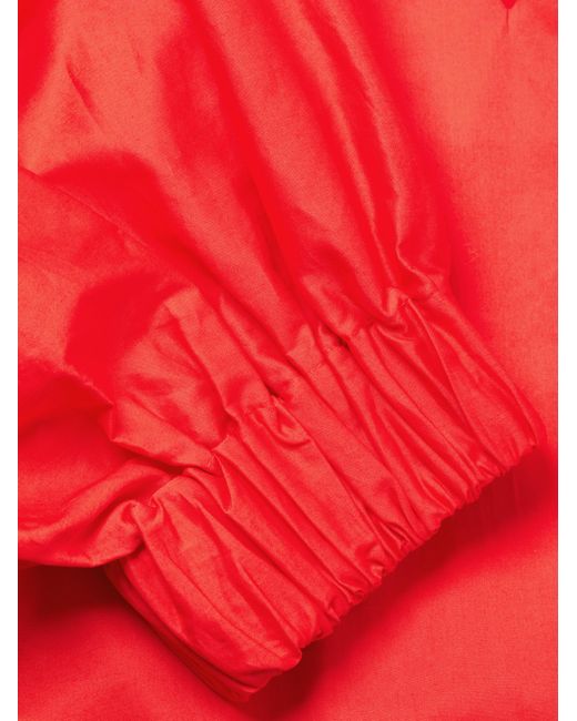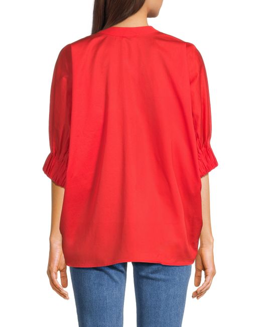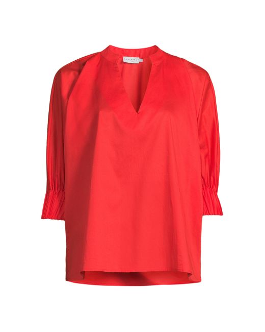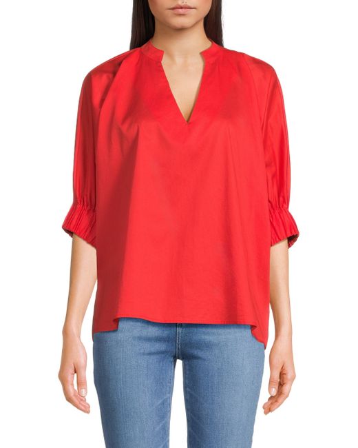 Made of cotton, this Media blouse from Harshman is cut for an oversized fit and styled with a stand V-neck, elbow-length sleeves, and a flounce hem. V-neck Elbow-length sleeves Flounce hem Pulls over 100% cotton Machine wash Imported SIZE & FIT About 26" from shoulder to hem Model measurements: 5'10" tall Model is wearing a US size Small. Modern Collections - Branded Separates > Harshman > Saks Fifth Avenue > Barneys. Harshman. Color: Poppy Red. Size: XS.