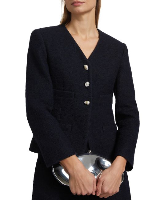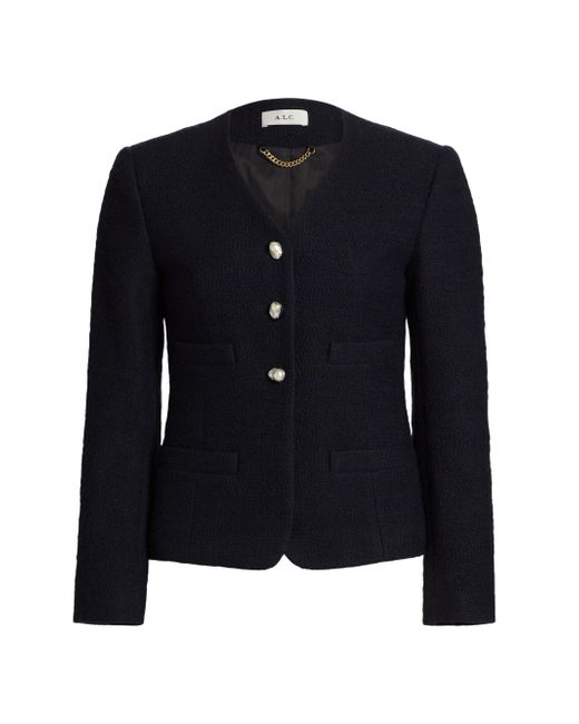 Crafted of cotton-blend bouclé, A.L.C.'s Luca tailored jacket is detailed with imitation pearl buttons. V-neck Bracelet-length sleeves Waist welt pockets Button-front closure 38% cotton/22% wool/20% polyester/18% acrylic/2% other fibers Dry clean Imported SIZE & FIT About 24.25" from shoulder to hem Model measurements: 5'10" tall Model is wearing a US size 4 ABOUT THE BRAND A born and raised New Yorker, founder Andrea Lieberman kickstarted her fashion career as a celebrity stylist, responsible for some of the most notable A-list red carpet appearances. She launched her line in 2009, based on her experience in making women feel powerful and confident. Her collections repeatedly feature modern tailoring, separates constructed in clean lines and the occasional splash of vibrant colors and patterns. Contemporary Sportswear - Workshop > A.l.c. > Saks Fifth Avenue > Barneys. A.L.C.. Color: Deep Navy. Size: 2.