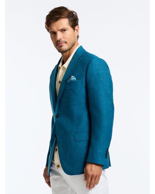 Surprise and delight in the Fallon blazer. The bold color of this wool-blend style instantly draws the eye. Notice the stylish jacquard print at the pocket square and interior lining. Layer over a button down for an elegant combo or wear it with your favorite tee for a more laid-back feel. Notch lapel at two-button closure Long sleeve with lightly padded shoulder Flap pockets at front Pull-out jacquard pocket square Full jacquard lining Two interior pockets 54% wool, 40% polyester, 6% linen Dry clean only Imported
