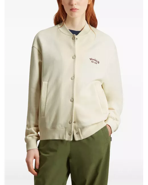 beige front press-stud fastening two side welt pockets long sleeves ribbed cuffs and hem