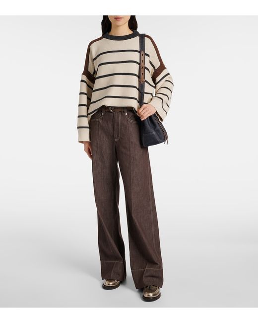 Materiale: 100% cotone. Trattamento: lavaggio a mano. Made in Italy. Colore del designer: White Beige + Lignite + Cacao. Dettagli: 100% ottone. Cotone.
