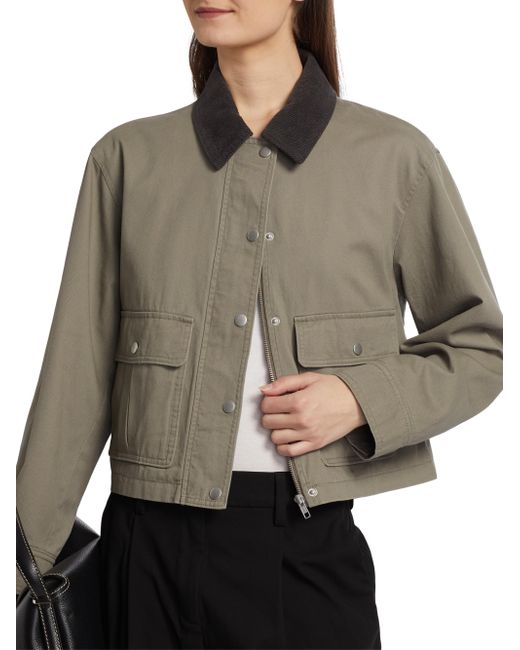 If Only Studio's twill jacket showcases a classic cut, featuring a contrasting collar, front flap pockets, and a snap closure. Spread collar Long sleeves Front snap flap pockets Front snap closure 100% polyester Lining: 80% polyester/20% cotton Machine wash Imported SIZE & FIT About 22.25" from shoulder to hem Model Measurements: 5'10" tall Model is wearing a US size Small. Contemporary Sportswear - Private Label Contempora > If Only Studio > Saks Fifth Avenue > Barneys. If Only Studio. Color: Sage. Size: Small.