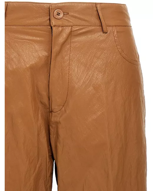 camel brown front button and zip fastening belt loops classic five pockets wide leg