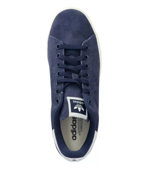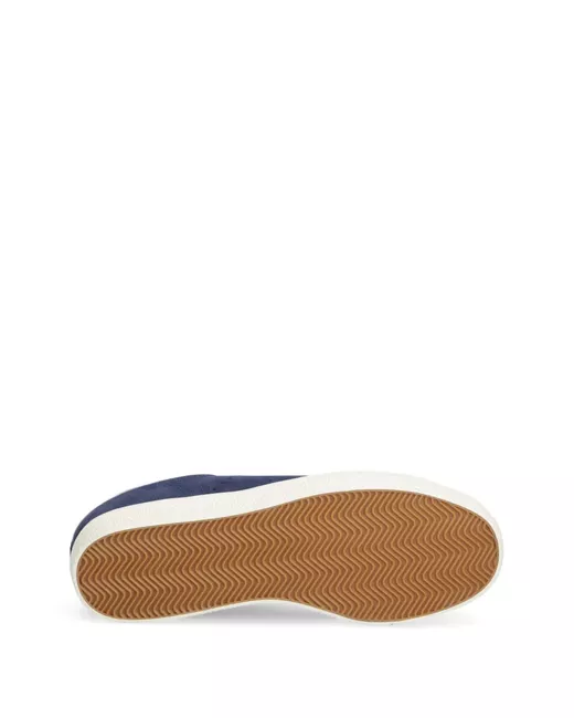 navy blue front lace-up fastening flat rubber sole contrasting branded heel counter perforated logo detail