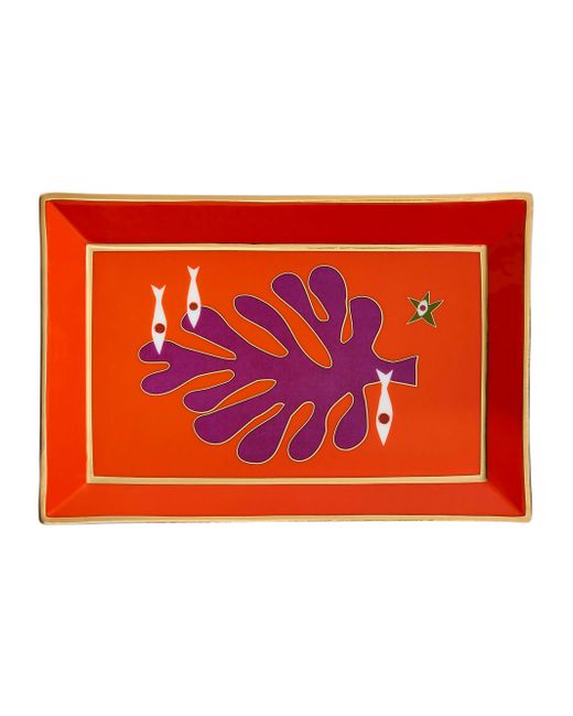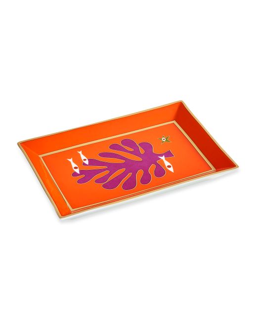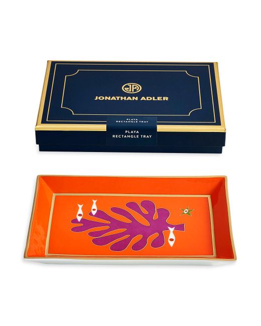 Seaside icons in a bright palette detail the Playa tray from Jonathan Adler, evocative of French 50s jet-set glamour. It is crafted from high-fired porcelain and packaged in a nifty gift box, making it a perfect hostess present. Porcelain Hand wash Imported SPECIFICATIONS About 7" W x 4.75" D x 1" H. Home - Decorative Home > Jonathan Adler > Saks Fifth Avenue > Barneys. Jonathan Adler. Color: Orange Red.