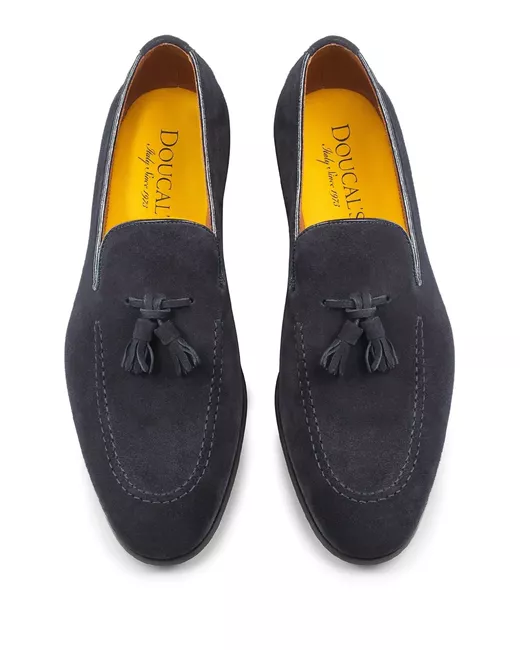 navy blue slip-on style tassel detail branded leather insole leather sole