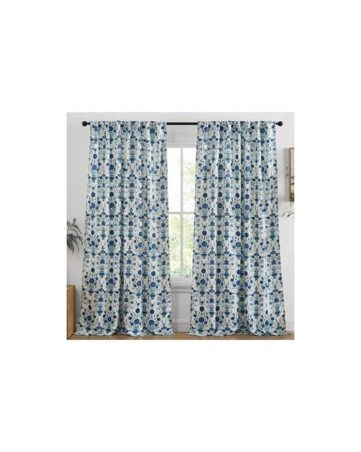 Clara Floral Damask Patterned Window Back Tab Rod Pocket Curtains Bedroom Light Blocking Darkening Panels Set of 2 52 W x 84 L di colore Blu