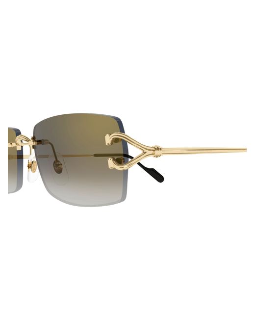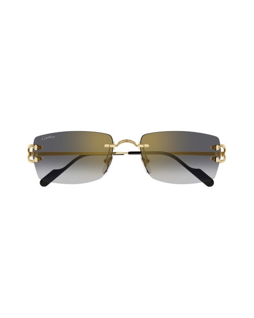 From the C Decor Collection. These 24K-gold-plated metal sunglasses from Cartier are designed with a rectangular silhouette, gradient UV-protective lenses, and a signature C hinge. 100% UV protection Gradient lenses Adjustable nose pads Includes case and cleaning cloth Metal Made in France SIZE 56mm lens width 18mm bridge width 140mm temple length Please note: Lens replacement is non-optional. Soft Accessories - Men Sunglasses > Cartier > Saks Fifth Avenue > Barneys. Cartier. Color: Gold Grey.