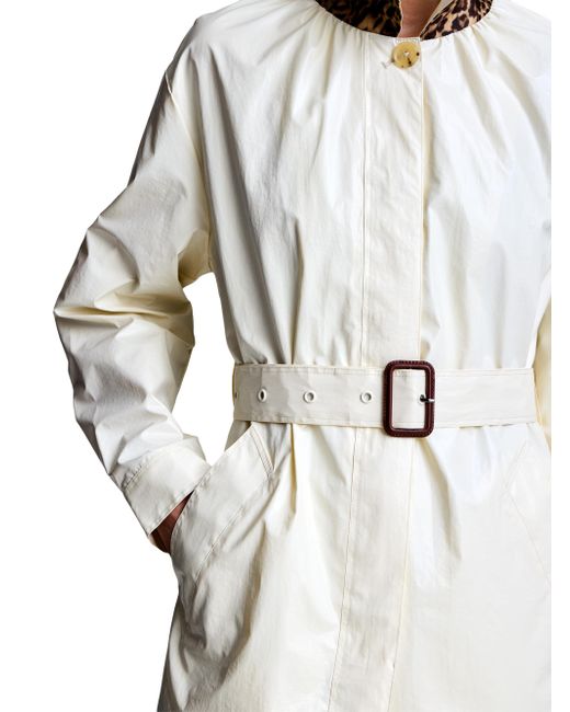 The Light Slicker trench coat from Jane Post highlights a streamlined design detailed with a spread collar, belted waist, and a covered button-front placket. An eye-catching leopard print accents the underside of the collar. Spread collar Long sleeves Belted Side slant pockets Button-front closure 100% Polyurethane Dry clean Imported SIZE & FIT About 36" from shoulder to hem Model measurements: 5'10" tall Model is wearing a US size Small. Outerwear And Swimwear - Rain & Quilts > Jane Post > Saks Fifth Avenue > Barneys. Jane Post. Color: Off White. Size: XS.