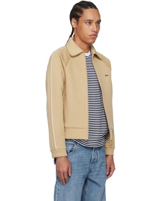 Cotton-blend jersey jacket. · Spread collar · Zip closure · Embroidered logo patch at chest · Seam pockets · Striped mesh trim at raglan sleeves Supplier color: Beige