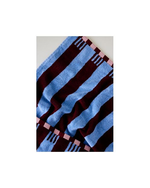 TBCo's plush towels are crafted from 100% natural 580 gsm cotton, offering superior absorbency and durability. The vibrant striped design is trimmed with contrast checkerboard edges, bringing a pop of print to your bathroom. Cotton Stripe Bath Towel by TBCo in Blue at Anthropologie