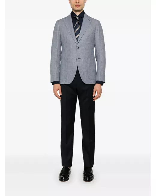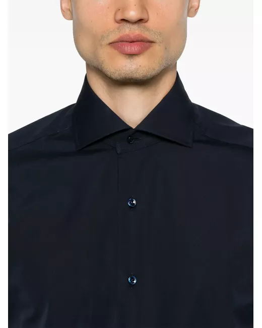 prussian blue front button fastening buttoned cuffs curved hem cutaway collar