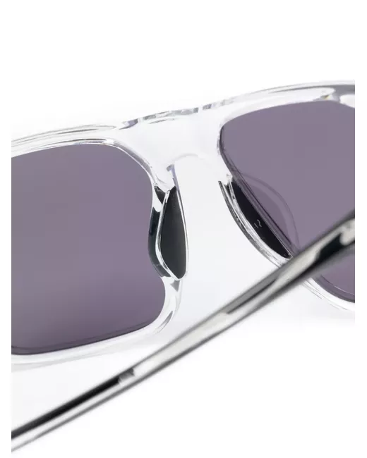 bianco/nero acetato design trasparente montatura rettangolare lenti grigie adesivo con logo sulle lenti asta con logo inciso aste dritte con punta curva Questi occhiali sono forniti con una custodia protettiva.