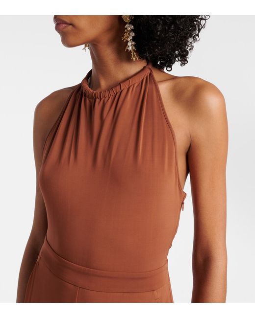 Materiale: 95% viscosa, 5% elastan. Trattamento: lavaggio a mano. Made in Tunisia. Colore del designer: Cacao. Colore dell'articolo: marrone. Chiusura: cerniera nascosta, allacciatura. Tasche: tasche a fessura laterali.