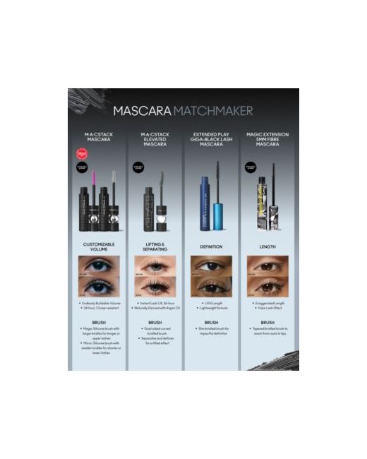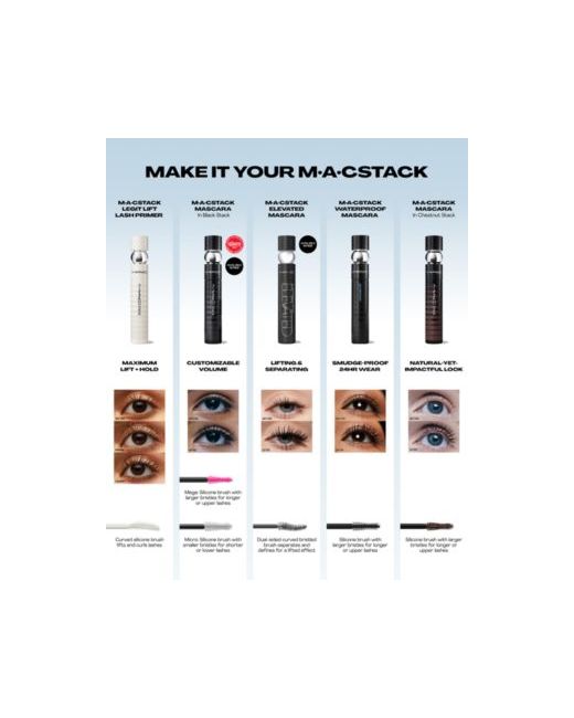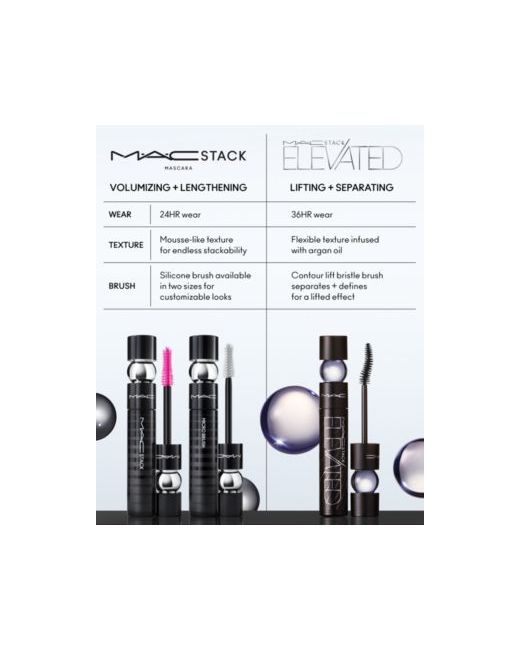 Elevate your lash stack to a new level. MACStack Elevated Mascara delivers +165% instant lash lift* with 36-hour wear. Its dual-sided, precision-tip curved brush lifts, separates and defines lashes without clumping. The formula features argan oil to help stack up fanned-out lashes.