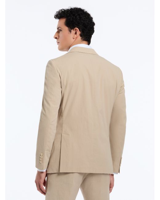 A seersucker blazer is a wardrobe essential. Notice the thoughtful details, like the pearlescent buttons and chest pocket at front. An elegant interior lining adds a bold finishing touch. Pair back to our matching seersucker pant for a coordinated ensemble that's perfect for everything from weddings to garden parties. Notch lapel with button front Long sleeve with lightly padded shoulder Chest pocket Besom pockets at front Interior lining Interior pockets Rear side vents 98% cotton, 2% lycra Dry clean only Imported