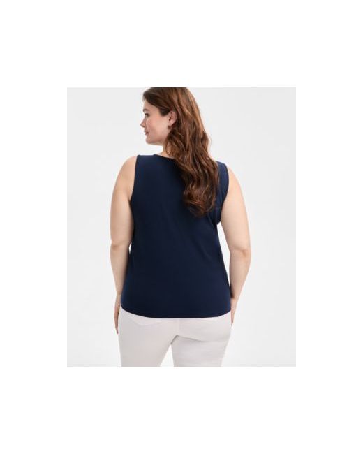 A pretty look in warm-weather chic, this plus size cotton tank top from Style & Co is polished with a scalloped V-neck.