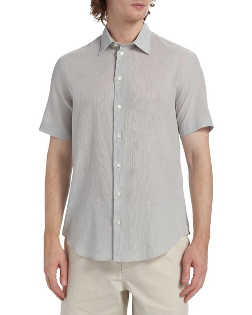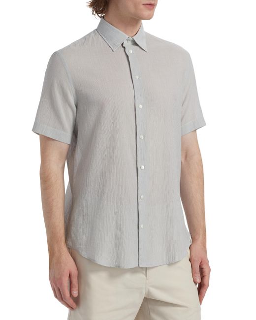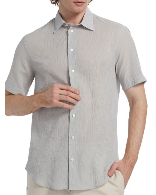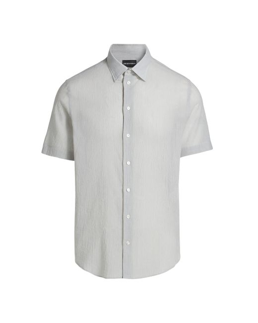 This Emporio Armani shirt is crafted of gauzy cotton and highlights a spread collar, short sleeves, and a refined button-front closure. Spread collar Short sleeves Shirttail hem Button-front closure 100% cotton Dry clean Imported SIZE & FIT Model measurements: 6'2" tall, 40" chest, 31" waist Model is wearing a US size Medium. Men Luxury Coll - Emporio Armani C > Emporio Armani > Saks Fifth Avenue > Barneys. Emporio Armani. Color: Blue. Size: XXL.