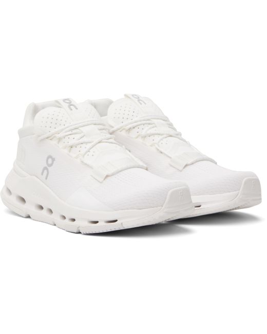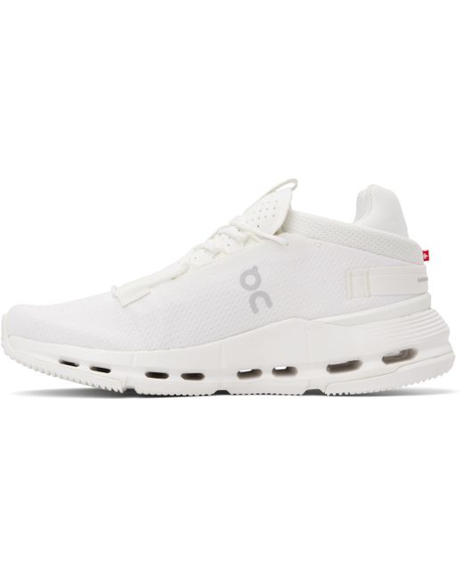 Low-top lightweight dope-dyed mesh sneakers in white. · Reflective logos bonded throughout · Lace-up closure · Pull-loop at perforated tongue · Padded collar · Mesh lining · Cushioned CloudTec® foam rubber midsole · Treaded Speedboard® rubber sole Supplier color: All white