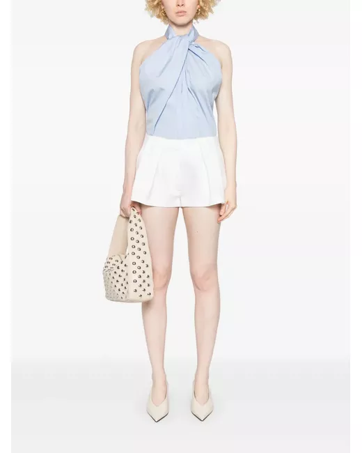 bianco chiusura nascosta frontale con bottone, gancio e zip due tasche laterali oblique tasca posteriore con chiusura a bottoni design senza fodera