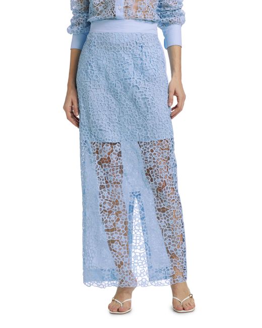 From the This Time Collection. Crafted of intricate lace, SWF's column maxi skirt flaunts a banded waist and back slit. Cotton was independently tested and passed safety tests for the presence of harmful substances during parts of the textile formation Banded elasticzed waist Back slit 100% cotton Hand wash Imported SIZE & FIT About 40" long Model measurements: 5'10" tall Model is wearing a US size Small. Contemporary Sportswear - Trend > Swf > Saks Fifth Avenue > Barneys. SWF. Color: Sky Blue. Size: XS.
