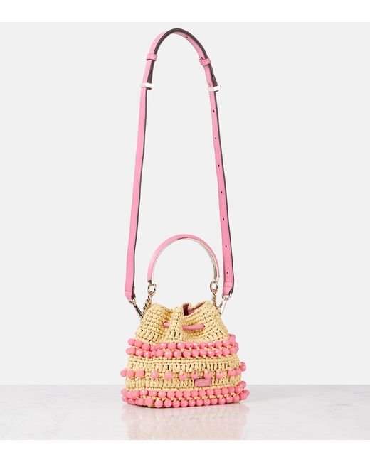 Materiale: tessuto. Rivestimento: tessuto. Made in Italy. Colore del designer: Natural/Fuchsia. Colore dell'articolo: beige, rosa. Inserto: pelle. Manico, Tracolla rimovibile. Chiusura: chiusura con coulisse. Colore del metallo: oro.