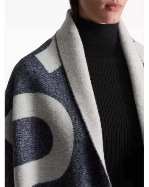 blu navy motivo jacquard con logo orlo sfrangiato design rettangolare
