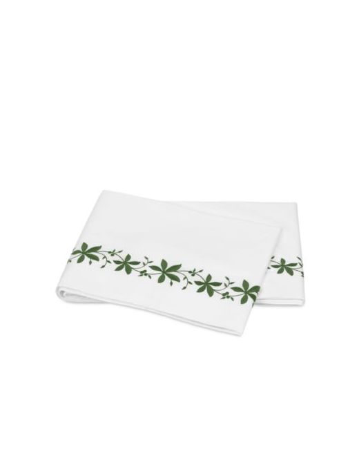 Adorned with a dancing frame of floral vines, Callista is Matouk's first decorative embroidery on the silky 500-thread count Bergamo Giza Egyptian cotton percale. With six colors to choose from, Callista adds a pop of character to any room and pairs beautifully with the whimsical Dominique print. Bergamo 500-thread count Giza 87 and 92 Egyptian cotton percale.