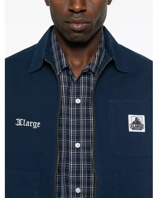 navy blue front zip fastening chest patch pocket two front pouch pockets embroidered logo at the chest
