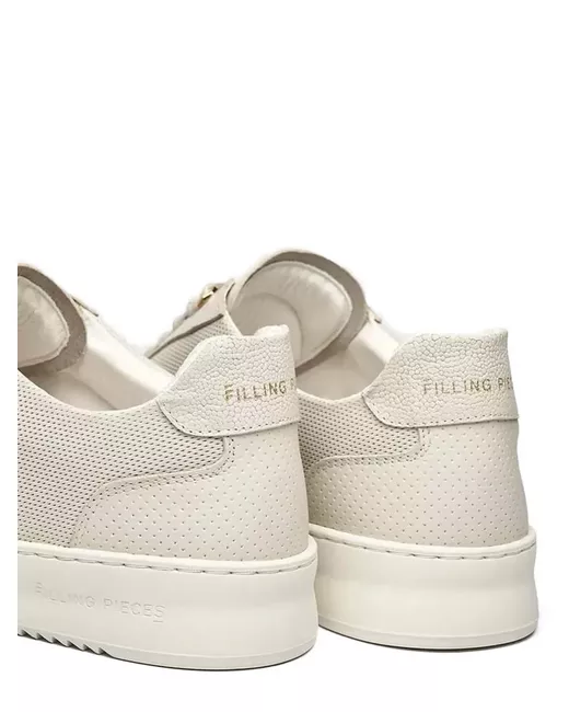 beige chiaro punta tonda lacci frontali profilo alla caviglia imbottito suola in gomma a contrasto dettaglio con logo metallico