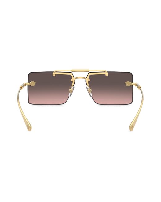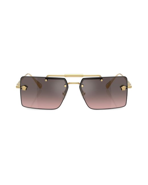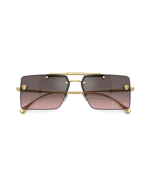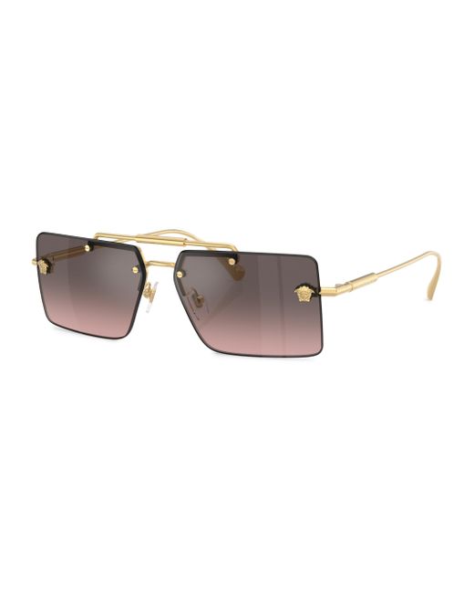 Designed with goldtone Medusa heads at each lens, these rimless rectangular sunglasses from Versace feature a metal frame and striking, gradient UV-protective lenses. 100% UV protection Gradient lenses Includes case and cleaning cloth Metal Made in Italy SIZE 60mm lens width 13mm bridge width 145mm temple length Please note: Lens replacement is non-optional. ABOUT THE BRAND Founded in 1978, Versace is instantly recognizable by the signature Medusa head logo, chosen by founder Gianni Versace for its Greek symbolism. The Italian label is known for its luxe, bold clothing and accessories-think gilding, oversized logos and punchy prints. Since taking over artistic direction, Gianni's sister Donatella Versace has maintained the brand's strong identity, with a renewed vision to give customers the ultimate freedom to express themselves. Soft Accessories - Sunglasses > Versace > Saks Fifth Avenue > Barneys. Versace. Color: Gold Purple.