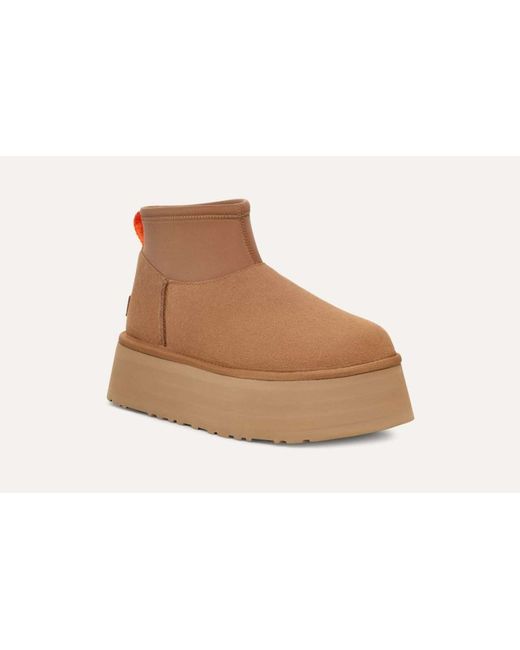 With all the ease of the Classic Dipper and a shorter shaft length, just like the Classic Mini, this boot is perfect for wearing under straight jeans or cropped trousers. Suede heel counter, Rear pull tab made from 100% recycled polyester fibers, Suede vamp, Neoprene shaft 17mm UGGplush™ 60% upcycled wool, 40% TENCEL™ Lyocell vamp lining 17mm UGGplush™ 60% upcycled wool, 40% TENCEL™ Lyocell sockliner Foam footbed EVA midsole Sugarcane EVA outsole Textile binding made from 100% recycled polyester fibers 2" platform height Suede heel label with embossed UGG® logo Best for: Casual RN 88276.