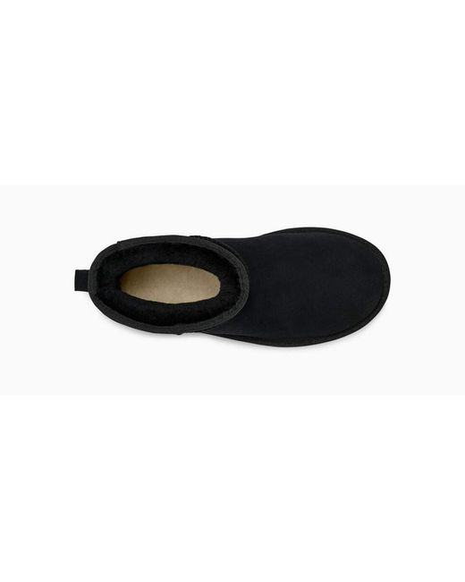 Suede upper Overlock stitch detailing on seams, Rear pull tab 17mm UGGplush™ 80% upcycled wool, 20% lyocell lining or 17mm UGGplush™ 60% upcycled wool, 40% lyocell lining 17mm UGGplush™ 80% upcycled wool, 20% lyocell sockliner or 17mm UGGplush™ 60% upcycled wool, 40% lyocell sockliner EVA midsole Treadlite by UGG outsole for comfort or SugarSole™ EVA outsole Recycled polyester binding 5" shaft height 2" platform height Leather heel label with embossed UGG® logo.