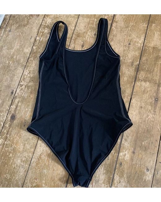 Burberry swimsuit with white contrast stitching and logo badge