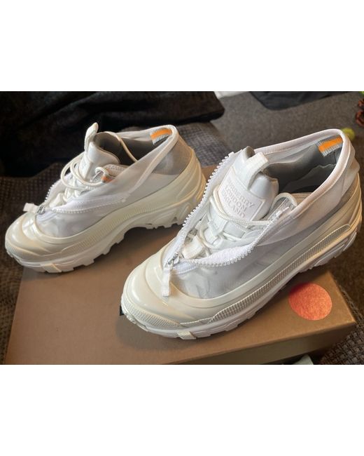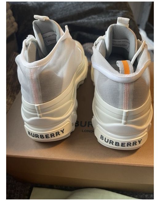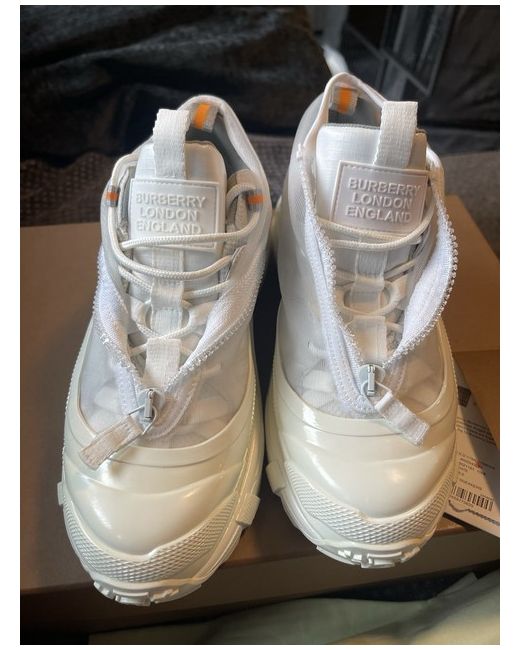 Burberry White Net And Rubber Arthur Low Top Sneakers Size 36. 100% authentic and to totally new. Come with Original Box, Original Dustbag These Arthur sneakers are ideal to add a luxe twist to your outfits. Crafted from net, leather, and rubber, this stylish white pair by Burberry is a mark of luxury. They feature a lace-up front with zip detail, logos on the heels, a chunky silhouette, and durable rubber soles.